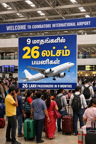 கோவை விமான நிலையத்தில் இருந்து தினமும் 30 விமானங்கள் இயக்கப்பட்டு வருகின்றன. தமிழ்நாட்டில் விமான போக்குவரத்தில் 2-வது பெரிய விமான நிலையமாக கோவை உள்ளது . இந்த நிதி ஆண்டில் கடந்த ஏப்ரல் மாதம் முதல் டிசம்பர் மாதம் வரையிலான 9 மாதங்களில் 25.89 லட்சம் பேர் இந்த விமான நிலையத்தை பயன்படுத்தி உள்ளனர் . இதன் மூலம் பயணிகள் போக்குவரத்தில் 8 சதவீதம் வளர்ச்சியை பதிவு செய்துள்ளது. கடந்த டிசம்பர் 3-ந் தேதி முதல் இண்டிகோ விமான நிறுவனம் சந்தித்த ஒரு பெரிய செயல்பாட்டு நெருக்கடியால் விமானங்கள் ரத்து செய்யப்பட்டன. இதனால் கோவையில் இருந்து விமான சேவைகள் குறைக்கப்பட்டன. கோவையிலிருந்து பயணிகள் போக்குவரத்தில் 9 சதவீதம் சரிவு ஏற்பட்டது. ஆனால் 2025 – ம் ஆண்டு ஏப்ரல் முதல் டிசம்பர் வரையிலான நிதி ஆண்டின் முதல் 9 மாதங்களுடன் ஒப்பிடுகையில் பயணிகள் போக்குவரத்தில் 8 சதவீதம் வளர்ச்சி ஏற்பட்டுள்ளது. ஆனாலும் விமான நிலைய விரிவாக்கத்தை விரைந்து செயல்படுத்த வேண்டும் என்று தொழில் துறையினர் கோரிக்கை விடுத்துள்ளனர்.