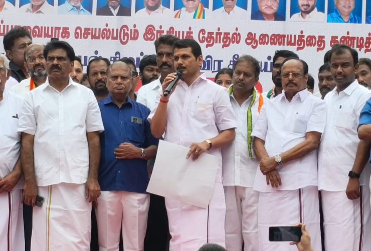 வருகின்ற தேர்தலே அதிமுகவிற்கு கடைசி தேர்தல் என்று நாம் காட்ட வேண்டும் என்றும்,கோவையில் ஒரு தொகுதியில் கூட பாஜக அதிமுக வென்று விடக்கூடாது என செந்தில் பாலாஜி தெரிவித்தார். சிறப்பு தீவிர வாக்காளர் பட்டியல் திருத்தம் தொடர்பாக, திமுக சார்பில் இன்று அனைத்து மாவட்டங்களிலும், முற்போக்கு இயக்கங்கள் சார்பில் கண்டன ஆர்ப்பாட்டங்கள் நடைபெற்றது.கோவை சிவானந்தாகாலனியில் முன்னாள் ...