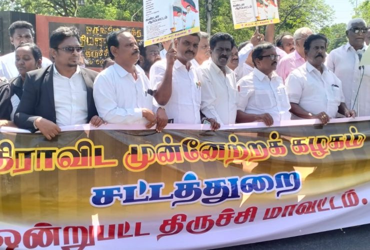 மத்திய அரசு கொண்டுவந்துள்ள மூன்று சட்ட திருத்தங்களை திரும்ப பெற வலியுறுத்தி தமிழ்நாடு மற்றும் புதுச்சேரி திமுக வழக்கறிஞர்கள் சங்கங்களின் கூட்டுக் குழு சங்க கூட்டத்தில் நிறைவேற்றப்பட்ட தீர்மானத்தின்படி திருச்சி நீதிமன்றம் அருகில் உள்ள சாலையில் திமுக வழக்கறிஞர்கள் ஓம் பிரகாஷ் தினகரன் தலைமையில் ஏராளமான வழக்கறிஞர்கள் ஆர்ப்பாட்டத்தில் ஈடுபட்டனர். ...