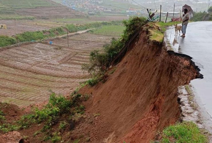 நீலகிரி மாவட்டத்தில் கடந்த சில நாட்களாக தென்மேற்கு பருவமழை தீவிரமாக பெய்து வருகிறது. குறிப்பாக ஊட்டி, குந்தா, கூடலூா் மற்றும் பந்தலூா் தாலுகாகளில் மழை அதிக அளவில் பெய்து வருகிறது. தொடா் மழையுடன் பலத்த காற்றும் வீசி வருவதால் சாலைகளில் ஆங்காங்கே மரங்கள் முறிந்து விழுந்து போக்குவரத்து பாதிப்பு ஏற்படுகிறது. நேற்று ஊட்டி-கூடலூா் சாலையில் எச்.பி.எப். ...