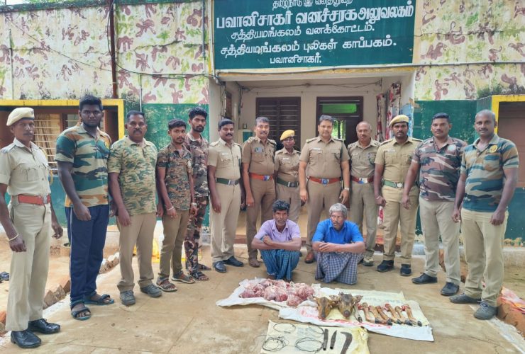 ஈரோடு மாவட்டம் சத்தியமங்கலம் புலிகள் காப்பகத்தில் ஏராளமான புள்ளி மான்கள் நடமாடுகின்றன. வனப்பகுதியில் இருந்து வெளியேறும் புள்ளி மான்கள் அவ்வப்போது விவசாயத் தோட்டங்களில் நுழைவது வாடிக்கையாக உள்ளது. பவானிசாகர் வனப்பகுதியில் இருந்து வெளியேறிய புள்ளிமான்கள் அப்பகுதியில் உள்ள பவானி ஆற்றங்கரை ஓரத்தில் நடமாடின. ஆற்றோரத்தில் நடமாடும் புள்ளி மான்கள் வேட்டையாடப்படுவதாக பவானிசாகர் வனத்துறையினருக்கு தகவல் கிடைத்ததன் ...