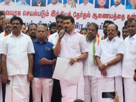 கோவை மாநகராட்சி கூட்டம் மேயர் கல்பனா தலைமையில் நடைபெற்றது. இந்த கூட்டத்தில் பல்வேறு முக்கிய தீர்மானங்கள் நிறைவேற்றப்பட்டது. இந்தநிலையிலையில் திடீரென அதிமுக கவுன்சிலர்கள் பிரபாகரன்,ஷர்மிளா சந்திரசேகர், ரமேஷ் ஆகியோர் கோவை மாநகராட்சி அலுவலகம் முன்பாக திடீரென போராட்டத்தில் ஈடுபட்டதால் அந்த இடமே பரபரப்பானது. மேயரின் வீட்டை அழகுபடுத்த ஒரு கோடி ரூபாய் நிதியா? ஊழல் நடக்குதுங்கோ, ...