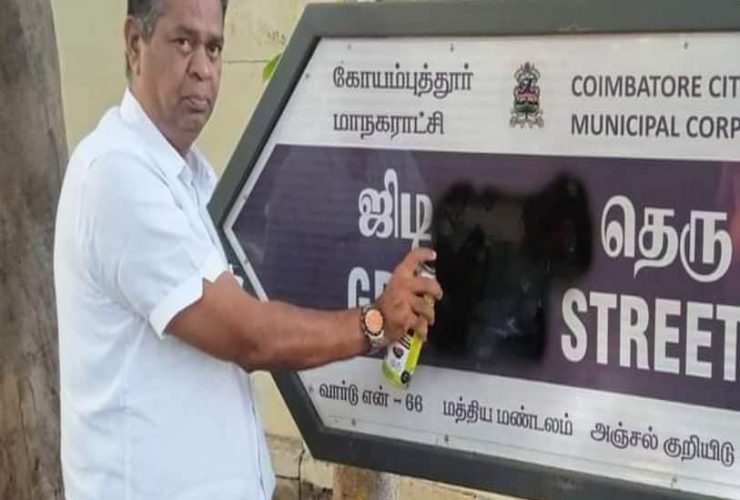இந்து முன்னணி மாநில தலைவர் காடேஸ்வரா சுப்பிரமணியம் கண்டனம் கோவை ஜன 19இந்து முன்னணி மாநில தலைவர் காடேஸ்வரா சுப்பிரமணியம் ஒரு அறிக்கை வெளியிட்டுள்ளார். அதில் அவர் கூறியிருப்பதாவது:- கோவை ரேஸ்கோர்ஸ் பகுதியில் ஜி. டி. நாயுடு என்ற வழிகாட்டும் பெயர் பலகை அமைந்துள்ளது. இதை அந்தப் பகுதியை சார்ந்த திமுக பிரமுகர் ரகுநாதன் என்பவர் ...