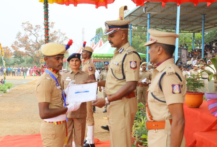 தமிழ்நாடுசீருடை பணியாளர் தேர்வாணையம் மூலம்இரண்டாம் நிலை காவலர்களுக்கு தேர்வு செய்யப்பட்ட 185 பேருக்குகோவை போலீஸ் பயிற்சி பள்ளியில் 6 மாத பயிற்சி அளிக்கப்பட்டு வந்தது..இவர்களுக்கு துப்பாக்கி சுடுதல்,அணிவகுப்பு கவாத்து ,கலவரத்தை ஒடுக்குதல், கவாத்து, சட்டம் -ஒழுங்கு வகுப்பு உள்ளிட்ட பல்வேறு பயிற்சிகள் அளிக்கப்பட்டது..இந்த பயிற்சி நிறைவு விழா மற்றும் அணிவகுப்பு போலீஸ் பயிற்சி பள்ளி மைதானத்தில் ...