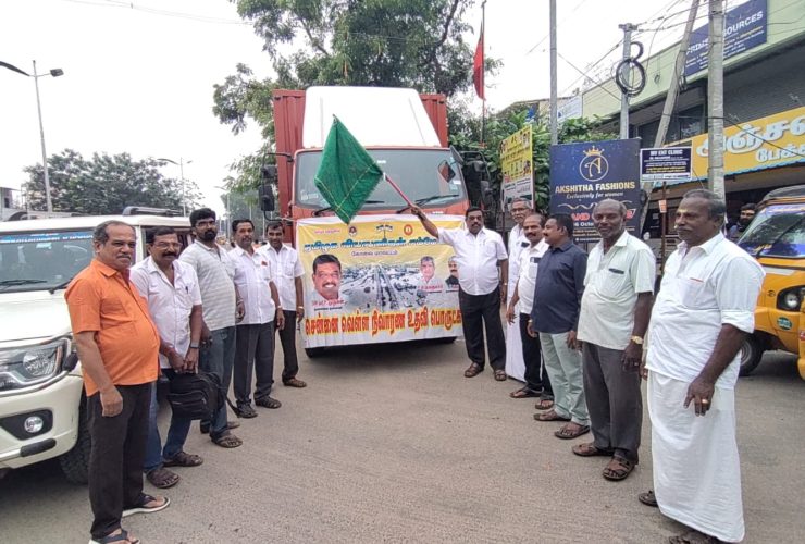 சென்னையில்ஏற்பட்டுள்ள மழை வெள்ள பாதிப்புக்குஉதவும் வகையில் கோவை மாவட்ட தமிழக வியாபாரிகள் சம்மேளனம்சார்பில் ரூ15 லட்சம் மதிப்புள்ளநிவாரண பொருட்கள் வழங்க முடிவு செய்யப்பட்டது. இதன்படி பாய்கள், பெட்ஷீட் ,லுங்கி, நைட்டி , பிளாஸ்டிக்பக்கெட், மற்றும் உணவுப் பொருட்கள் வாங்கப்பட்டன.இவைகள் ஒரு லாரி மூலம் இன்று சென்னைக்கு அனுப்பப்பட்டது.இதை தமிழக வியாபாரிகள் சம்மேளன தலைமை கமிட்டி தலைவர் ...
