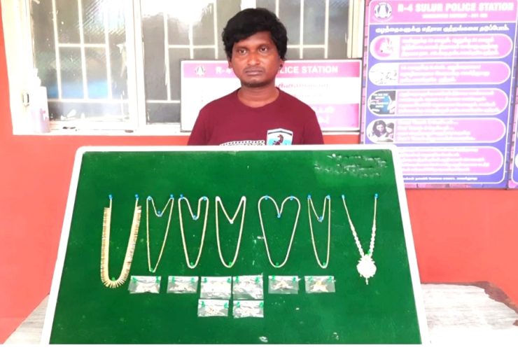 பல திருட்டு வழக்கில் தொடர்புடைய நபர் கைது: 30 சவரன் நகையை பறிமுதல் செய்த காவல் துறையினர் கோவை மாவட்டம் சூலூர் காவல் நிலைய பகுதியில் பரமசிவம் என்பவர் வசித்து வருகிறார். கடந்த 23.02.2023 ஆம் தேதி 35 வயது மதிக்கத்தக்க நபர் சோலார் மின்சாரம் சரி செய்வதாகவும் தான் அரசாங்கத்தால் அனுப்பப்பட்ட லைன் இன்ஸ்பெக்டர் ...