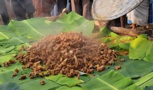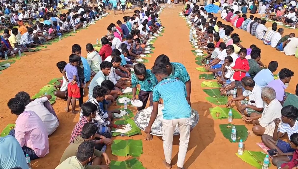 ஆண்கள் மட்டும் பங்கேற்கும் வினோத அசைவ திருவிழாவில் , 60 ஆடுகள் பலியிடப்பட்டு , 10 ஆயிரம் பேருக்கு கறி விருந்து பரிமாறப்பட்டது.