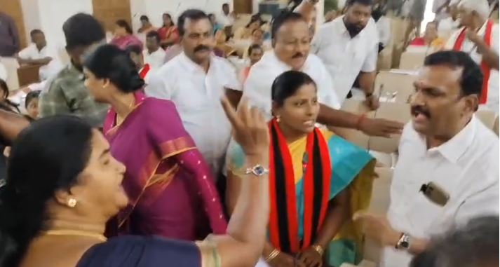 அப்போது தி.மு.க , காங்கிரஸ், கூட்டணி கட்சி கவுன்சிலர்கள் மத்திய அரசை கண்டித்து கோஷங்கள் எழுப்பிய படி மாநகராட்சி கூட்ட அரங்கிற்கு சென்றனர்.தமிழக அரசு ஏராளமான திட்டங்களை கோவைக்கு அளித்து உள்ளது. கோவை மாவட்டத்தில் தி.மு.க விற்கு எம் .எல். ஏ . யாரும் இல்லை என்றாலும், முதலமைச்சர் மு.க.ஸ்டாலின் ஏராளமான திட்டங்களை கோவை மாவட்டத்திற்கு கொடுத்து வருகிறார்.ஆனால் மத்திய அரசு எதுவுமே செய்யாமல், உண்மைக்கு புறம்பான கருத்துக்களை கூறி வருகிறது என்று கூறி அதை கண்டித்து கோஷம் எழுப்பினர்.