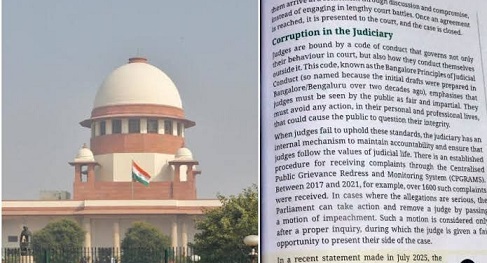 தலைமை நீதிபதி சூர்யகாந்த் தலைமையிலான அமர்வு நேற்று வழக்கை விசாரித்தது. அப்போது பல கேள்விகளை நீதிபதிகள் எழுப்பினர். அதற்கு மத்திய அரசின் சொலிசிட்டர் ஜெனரல் துஷார் மேத்தா பதில் அளிக்கையில் கூறியதாவது: “இந்த விவகாரத்துக்கு நிபந்தனையற்ற மன்னிப்பு கோருகிறேன். புத்தகத்தில் குறிப்பிட்ட அத்தியாயத்தை எழுதியவர்கள் இனிமேல் புத்தகக் குழுவிலோ, கல்வித் துறையின் பணியிலோ ஈடுபடுத்தப்பட மாட்டார்கள். சந்தைக்குச் சென்ற 32 புத்தகங்களும் திரும்பப் பெறப்பட்டுள்ளன. ஒட்டுமொத்த புத்தகமும் மறு ஆய்வுக்கு உட்படுத்தப்படும். இந்த வழக்கில் மூத்த வழக்கறிஞர்கள் அபிஷேக் மனு சிங்வி, கபில் சிபில் ஆகியோர் ஆஜரானார்கள்.பின்னர் அனைத்துத் தரப்பு வாதங்களையும் கேட்ட நீதிபதி அமர்வு பிறப்பித்த உத்தரவில் கூறியிருப்பதாவது: இந்த விவகாரத்தில் மத்திய கல்வித் துறை செயலர், தேசிய கல்வி ஆராய்ச்சி மற்றும் பயிற்சி கவுன்சிலின் இயக்குநர் தினேஷ் பிரசாத் சக்லானி உரிய விளக்கம் அளிக்க வேண்டும். நீதித் துறையில் ஊழல் என்ற அத்தியாயத்துடன் வெளியான 8-ம் வகுப்பு சமூக அறிவியல் பாடப் புத்தகத்துக்கு தடை விதிக்கப்படுகிறது. அச்சு மற்றும் டிஜிட்டல் உள்ளிட்ட அனைத்து வகையிலும் பாடப் புத்தகத்தை நீக்க வேண்டும்.