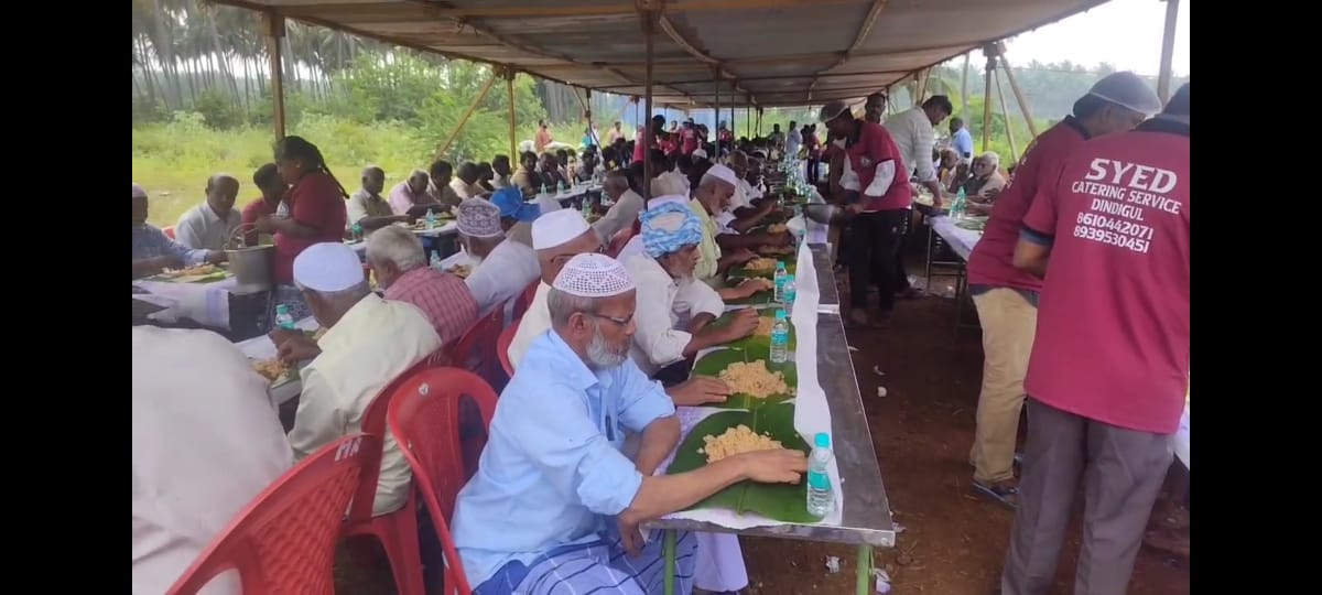 அதனைத் தொடர்ந்து சித்தையன் கோட்டை தர்கா அருகே உள்ள தனியார் விவசாய நிலத்திடலில் கொட்டகை மற்றும் அன்னதான இருக்கைகள் அமைத்து நெய் சாதம், காய்கறி குழம்புகள் என அறுசுவை உணவுகளாக படைத்து இரண்டாயிரத்திற்கு மேற்பட்ட ஏழை எளிய மற்றும் விவசாய பொதுமக்களுக்கு அன்னதானமாக வழங்கினார் .இந்த அன்னதானத்தை அருகில் உள்ள சித்தையன் கோட்டை , அழகர் நாயக்கன் பட்டி, நரசிங்கபுரம், சேடபட்டி, சொக்கலிங்கம் புரம், போடிக்காமன் வாடி,வீரசிக்கம்பட்டி, ஆத்தூர் ,செம்பட்டி சுற்றுவட்டார விவசாய பொதுமக்கள் உண்டு மகிழ்ந்து சென்றனர்.. மேலும் இந்நிகழ்விற்கான ஏற்பாடுகளை மும்மதங்களை சேர்ந்த ஊர் முக்கியஸ்தர்கள் மற்றும் விவசாய சங்க நிர்வாகிகள் செய்திருந்தனர்.