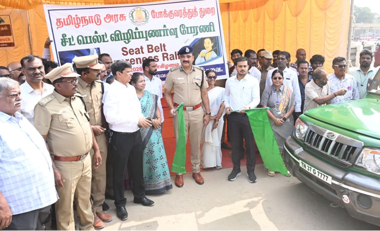 ஓட்டுநர் பயிற்சி கூட்டமைப்பு சார்பில் சீட்பெல்ட் அணிவது குறித்து வாகன விழிப்புணர்வு பேரணி நடைபெற்றது.