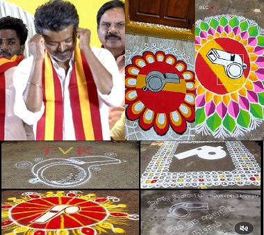 தமிழக வெற்றிக் கழகத்தின் தலைவர் விஜய் நேற்று தனது கட்சியின் தேர்தல் அறிக்கையை வெளியிட்டதோடு, தமிழகப் பெண்களிடம் ஒரு உருக்கமான வேண்டுகோளையும் விடுத்திருந்தார்.எனக்காக உங்கள் வீட்டு வாசலில் ‘விசில்’ சின்னத்தைக் கோலமாகப் போடுங்கள்” என்று அவர் பேசிய சில மணி நேரங்களிலேயே, தமிழகத்தின் பல்வேறு பகுதிகளில் தவெக தொண்டர்களும், பெண் ஆதரவாளர்களும் களத்தில் இறங்கிவிட்டனர்.சென்னை முதல் குமரி வரை விஜய்யின் வேண்டுகோளை ஏற்று, இரவு நேரத்திலேயே பல வீடுகளின் வாசல்களில் ‘விசில்’ சின்னம் கோலமாக ஜொலிக்கத் தொடங்கியுள்ளது. ரங்கோலி வண்ணங்களால் விசில் சின்னத்தை வரைந்து, அதன் கீழே “நம்ம அண்ணனுக்கு ஒரே ஒரு வாய்ப்பு கொடுங்கள்”, “வெற்றி நிச்சயம்”, “நமது சின்னம் விசில்” போன்ற வாசகங்களை எழுதி அதனைப் புகைப்படம் எடுத்து சமூக வலைதளங்களில் தெறிக்கவிட்டு வருகின்றனர்.விஜய் வேண்டுகோள் விடுத்து சில மணி நேரங்களிலேயே இணையதளம் முழுக்க இந்த ‘விசில் கோலங்கள்’ ஆக்கிரமித்துள்ளன. “தலைவன் ஒரு வார்த்தை சொன்னா, அதைத் தட்டாமச் செய்வோம்” எனத் தொண்டர்கள் உற்சாகத்துடன் பதிவிட்டு வருகின்றனர். தேர்தலுக்கு இன்னும் ஒரு வாரமே உள்ள நிலையில், விஜய்யின் இந்த ‘கோல வியூகம்’ குடும்பப் பெண்களிடையே பெரிய தாக்கத்தை ஏற்படுத்தும் என எதிர்பார்க்கப்படுகிறது.வாசல் கோலங்கள் மூலமே தங்களது ஆதரவை வெளிப்படுத்தும் பெண்களின் இந்தச் செயல், தவெக வட்டாரத்தில் பெரும் நெகிழ்ச்சியை ஏற்படுத்தியுள்ளது.